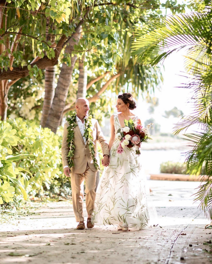 Shown in leaf green with white accents. Available in white/white, white/silver, ivory/gold, blush/rose gold and an array of colors all custom made for each gown.