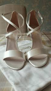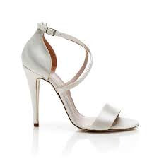A very high heel sandal, crafted in Italian ivory silk satin, and made in Spain. The style fastens neatly on the foot with a crossed strap and delicate gold buckle. The Arabella has the versatility to be re-colored and enjoyed after the wedding, or if a colored shoe is preferred for the occasion, they can be dyed any shade first.