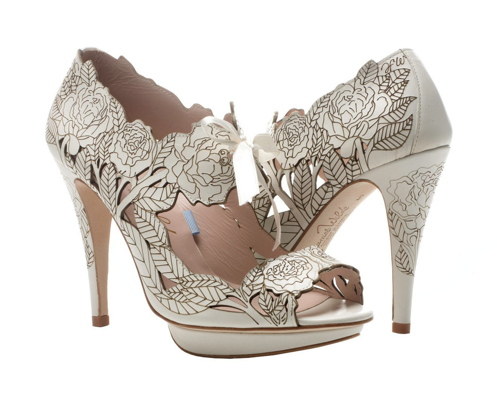 Floral laser cut leather platform heels from Harriet Wilde/ London.