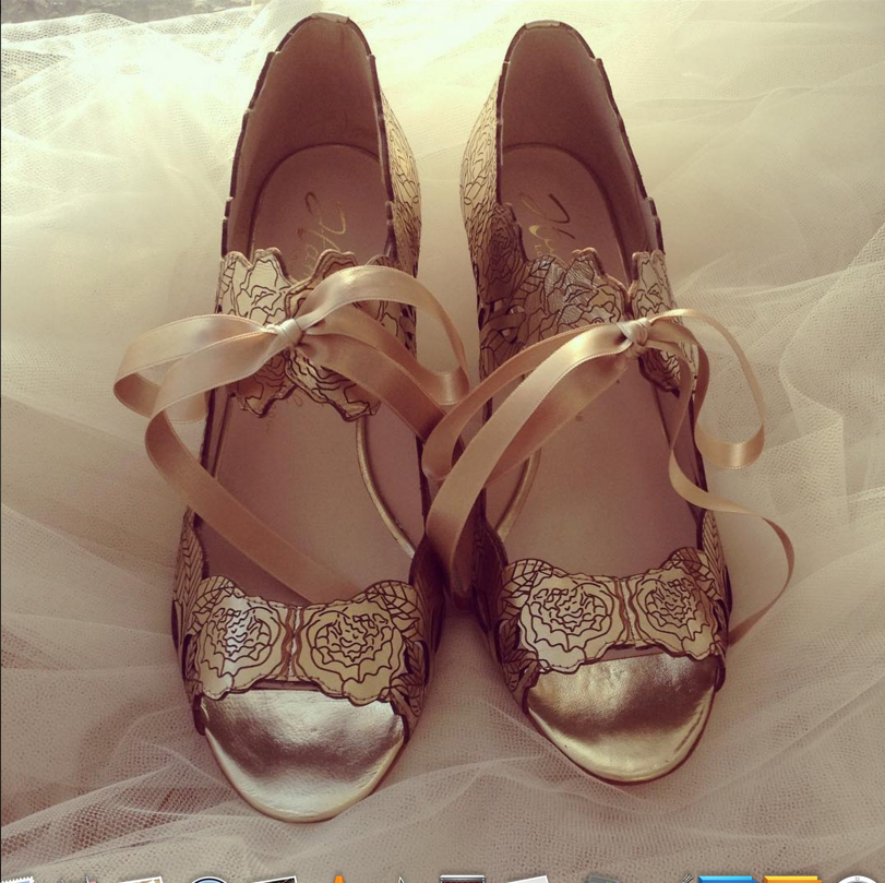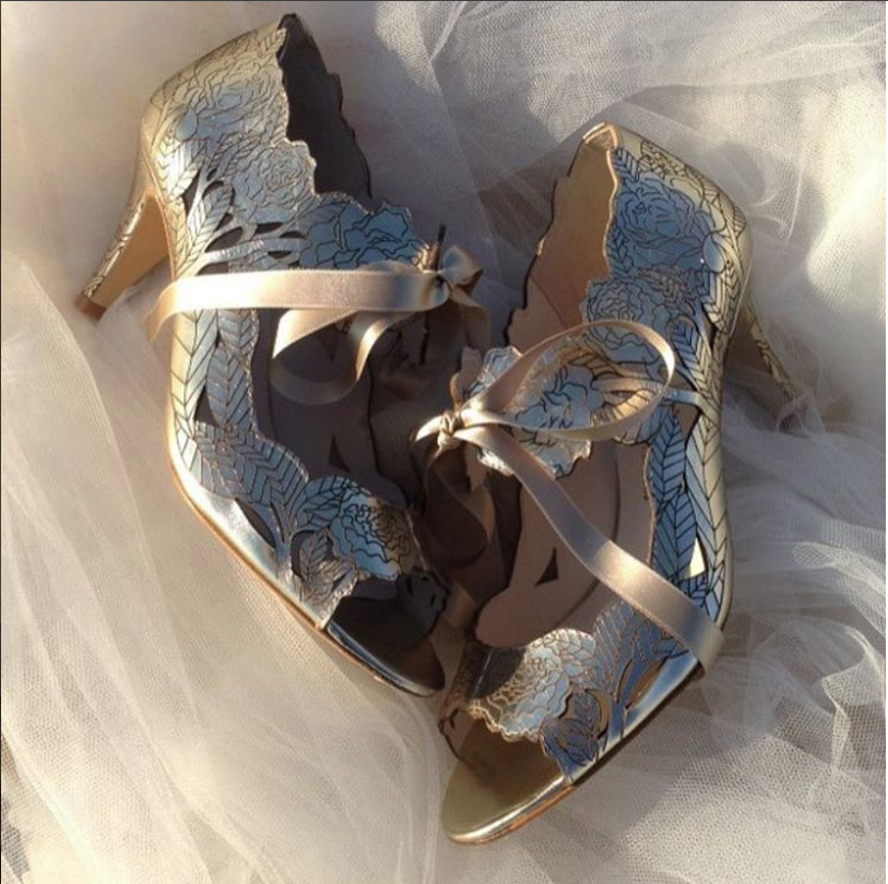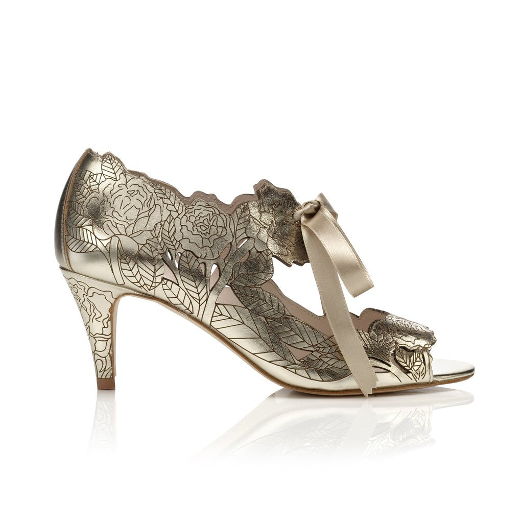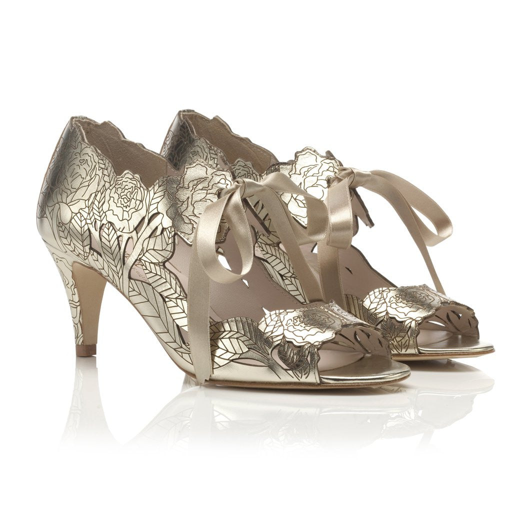 Floral laser cut leather peep toe heel from Harriet Wilde/London.